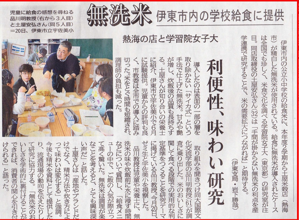 弊社が静岡県学校給食会より玄米の供給を受けてサイカ式精米法にて仕上げて納品している伊東市学校給食用米の取り組みについてご紹介いただきました。