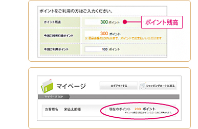 貯まったポイントは1ポイント1円として次回のお買い物に使用できます。