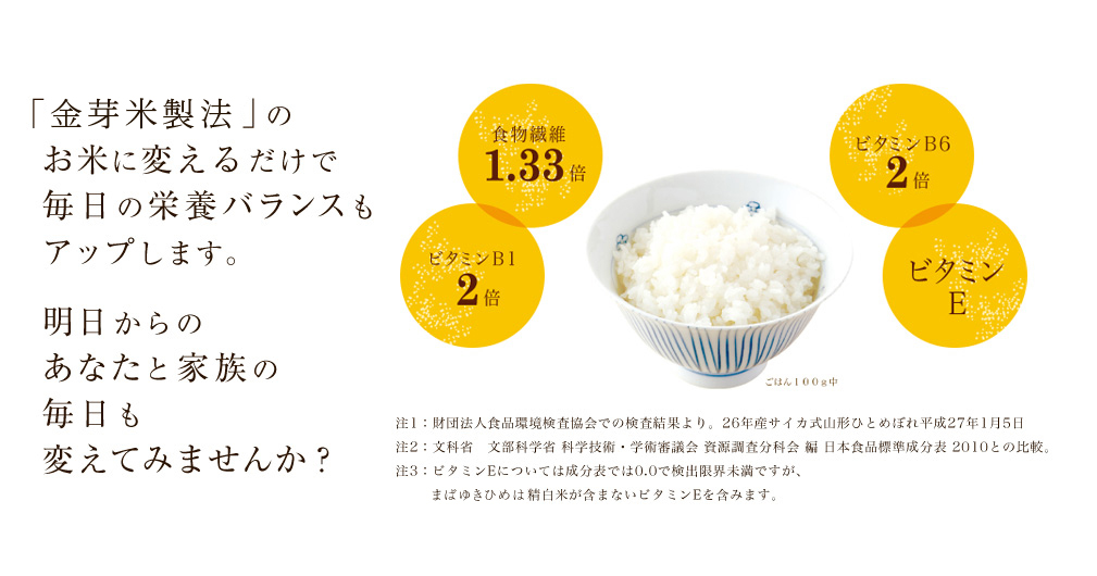 金芽米製法とは、このBG無洗米方法と、新しい精米技術「均圧精米法」を組み合わせることによって、従来の精米法ではヌカと一緒に